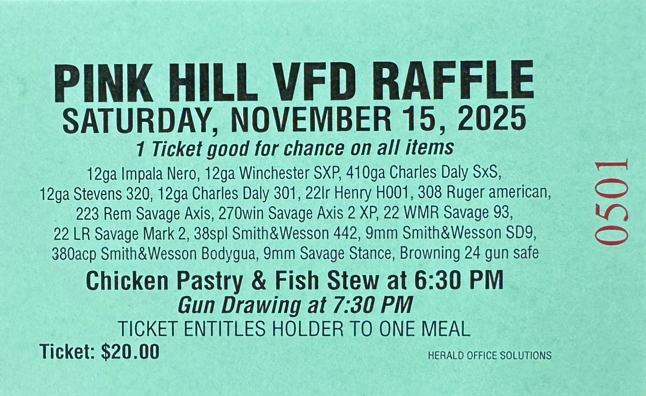 PINK HILL VOLUNTEER FIRE & RESCUE ANNUAL DRAWING 2025